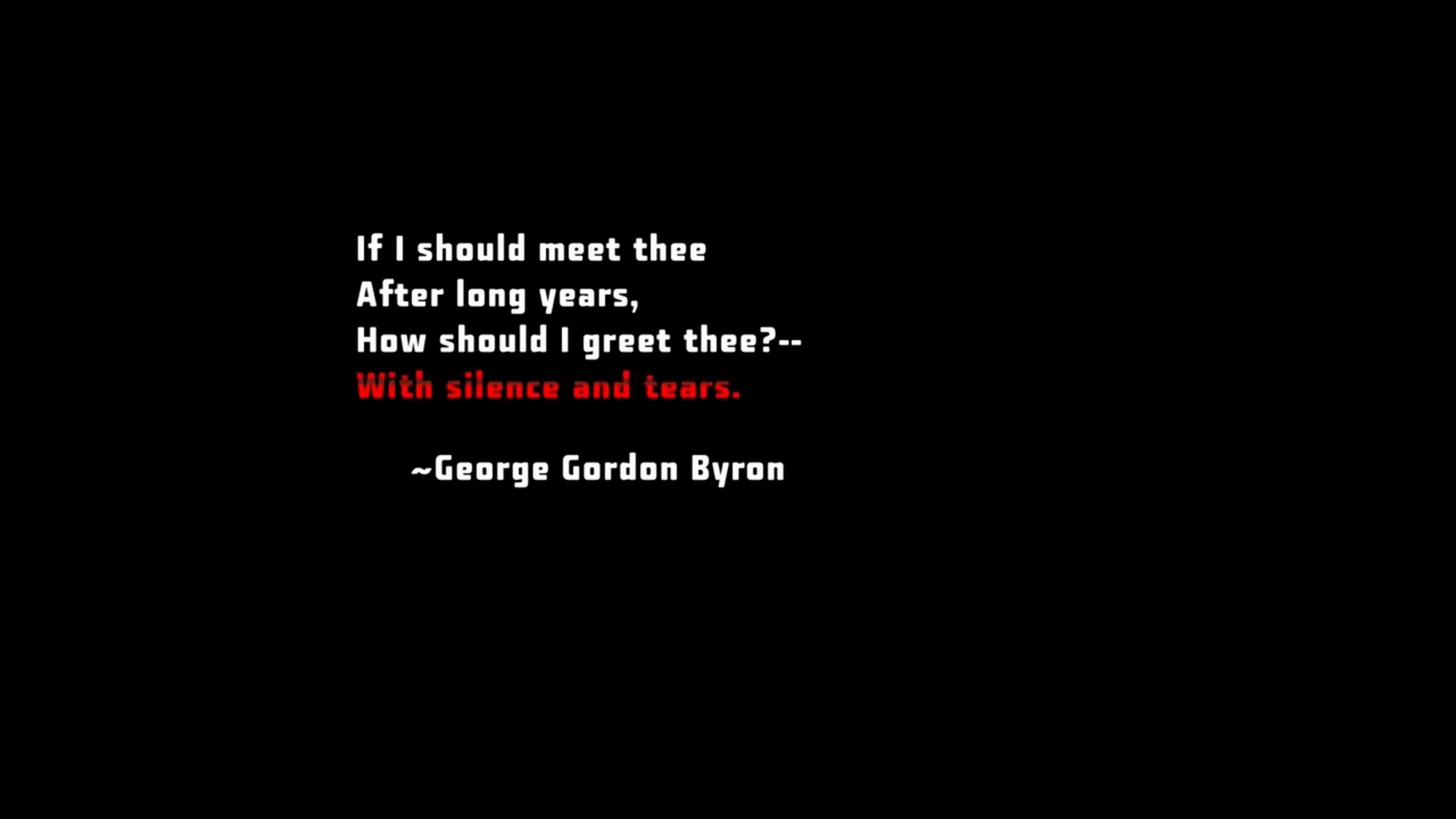 In secret we met — In silence I grieve, That thy heart could forget, Thy spirit deceive. If I should meet thee After long years, How should I greet thee? — With silence and tears.