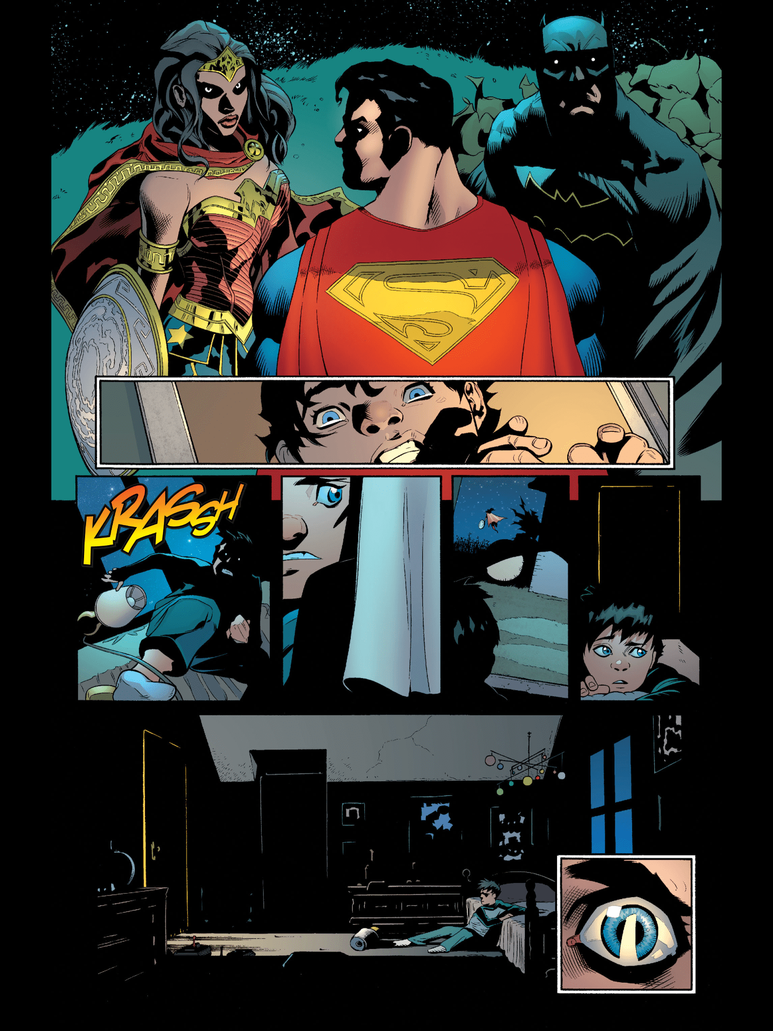 But after the jump, we’ll be looking at the flashback-tastic Justice League #51 and punch-tastic Injustice: Gods Among Us – Year 5 #26, as well as a Trinity-tastic night-time meeting in Superman: Rebirth #1. Oh, by the way, Donna Troy has a new costume this month, too, over in Teen Titans: Rebirth #1.