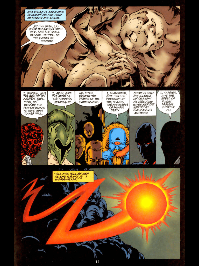 The story of Cronus/Kronos eating his children is obviously very important in Greek myth. Cronus himself has often appeared in Wonder Woman, most recently in Brian Azzarello’s run. However, his most notable appearance was during Eric Luke’s run, when he decides to destroy all other religions with the help of his own version of Wonder Woman: