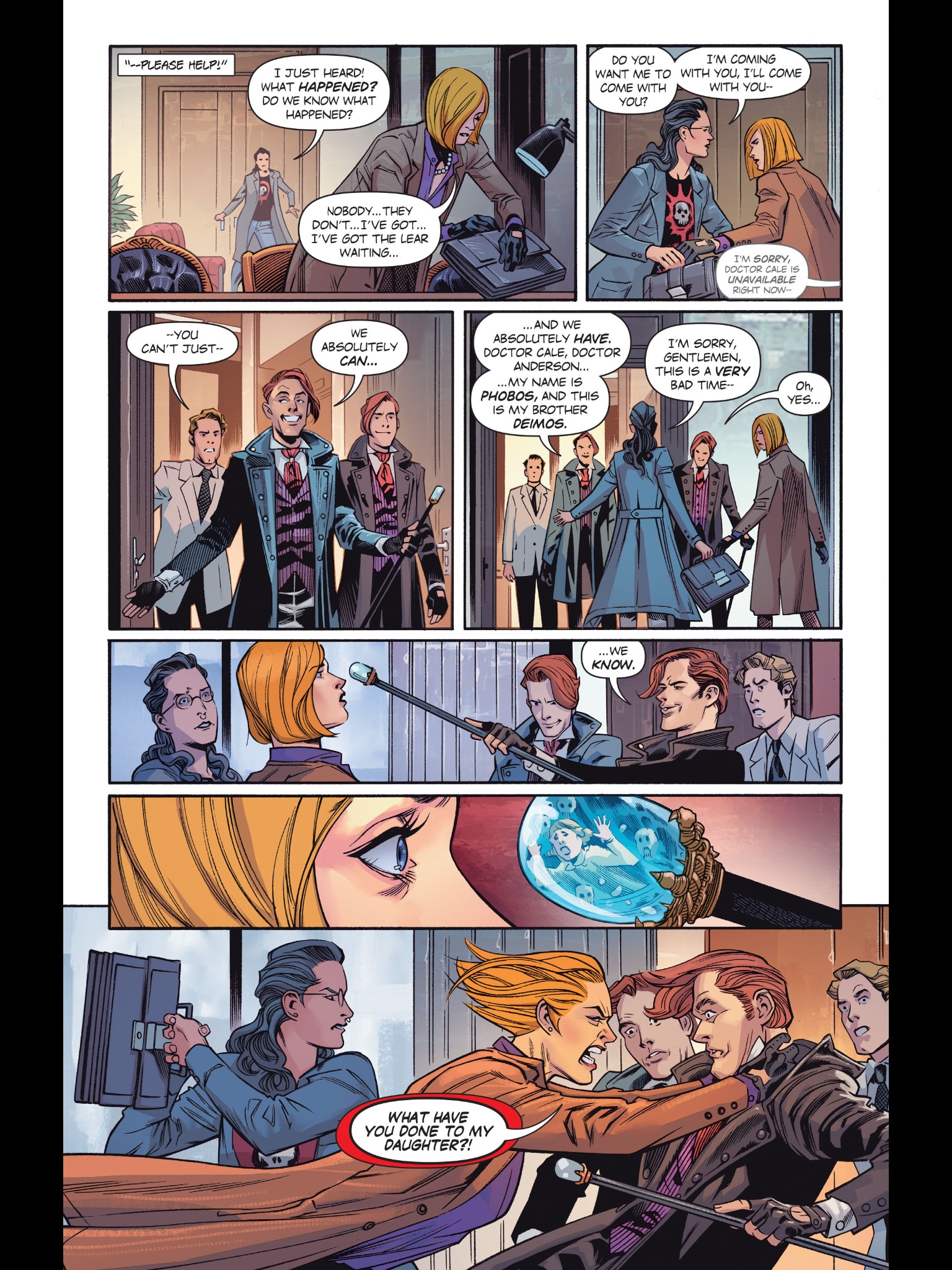 This is mostly the origin story for Doctor Cyber, though, whom we saw again last issue. While Cyber is currently a virtual assistant to Cale, in a head nod to old continuity, we briefly get a glimpse of her as a robot run telepathically by Cale’s best friend, who doesn’t come out of the encounter at all well: