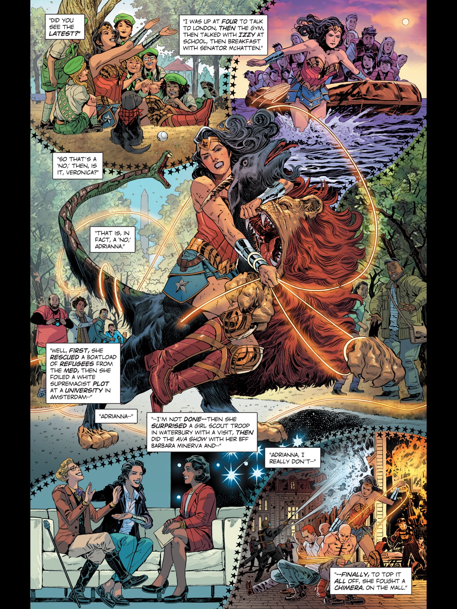 Many things, including rescue a boatload of refugees in the Mediterranean, foil a white supremacist plot in the Netherlands, visit some girl scouts, appear on TV with Barbara Minera and capture a chimera menacing a mall.